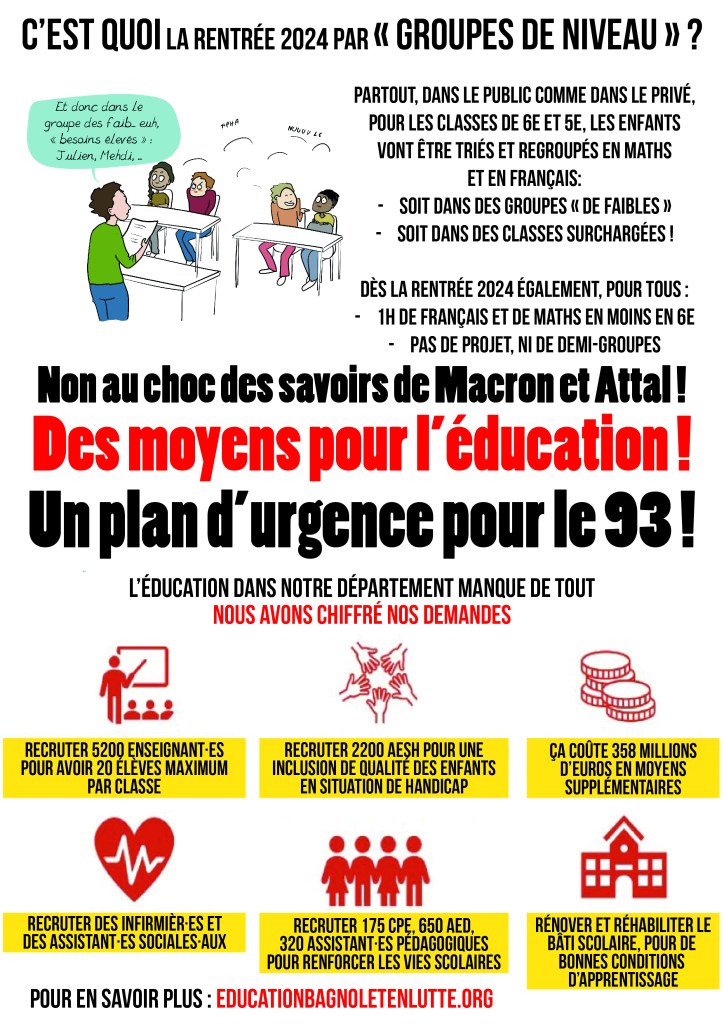 Grande manifestation départementale, toute la population du 93 dans la rue, contre les groupes de niveau et le « choc des savoirs », pour le plan d’urgence de l’éducation dans la Seine-Sainte-Denis !