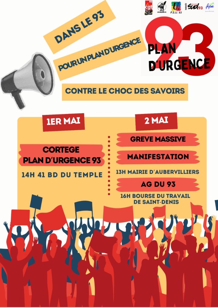 – 14h – Manifestation du 1er mai, dans le cortège Éducation 93. - JEUDI 2 MAI
